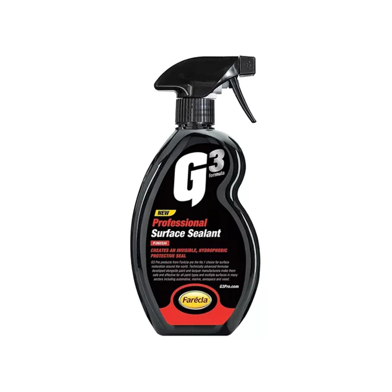 El sellador de superficies G3 Pro crea una capa invisible, duradera e hidrófoba con siliconas de unión para ayudar a proteger contra las sales de la carretera, la savia de los árboles, la cal de los pájaros, la lluvia ácida, etc. Fácil de encerar para obtener un brillo mejorado.